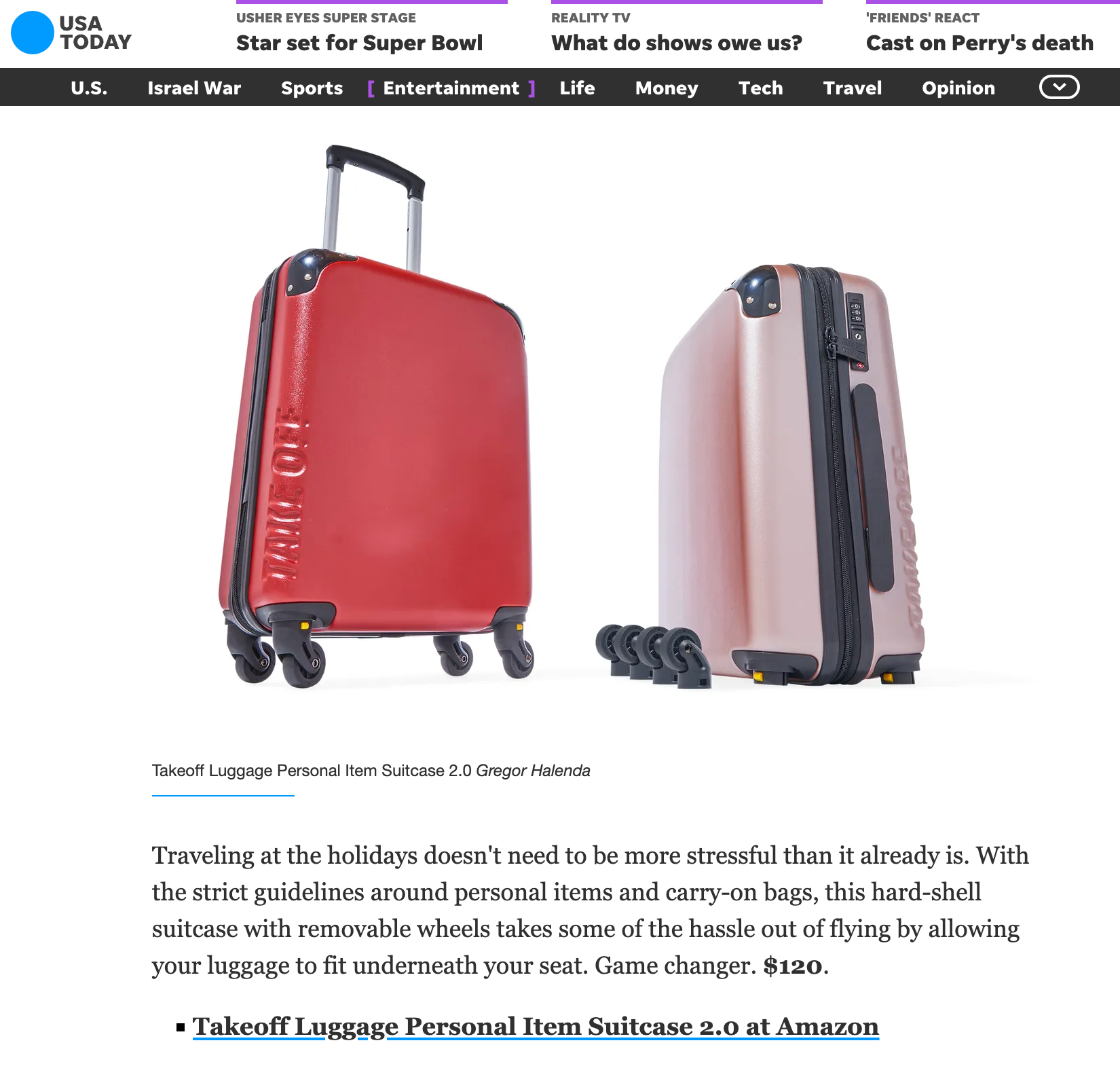 TAKE OFF Luggage in the press. News about our amazing luggage and accessories all over the web. Take a look and see what publications are saying about us.