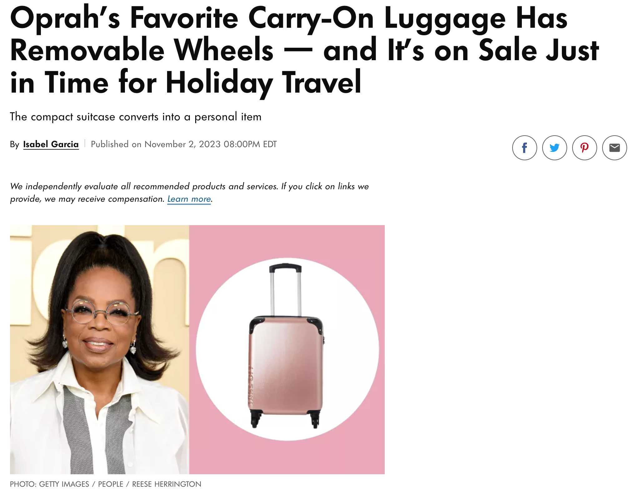 Oprah’s Favorite Carry-On Luggage Has Removable Wheels — and It's on Sale Just in Time for Holiday Travel