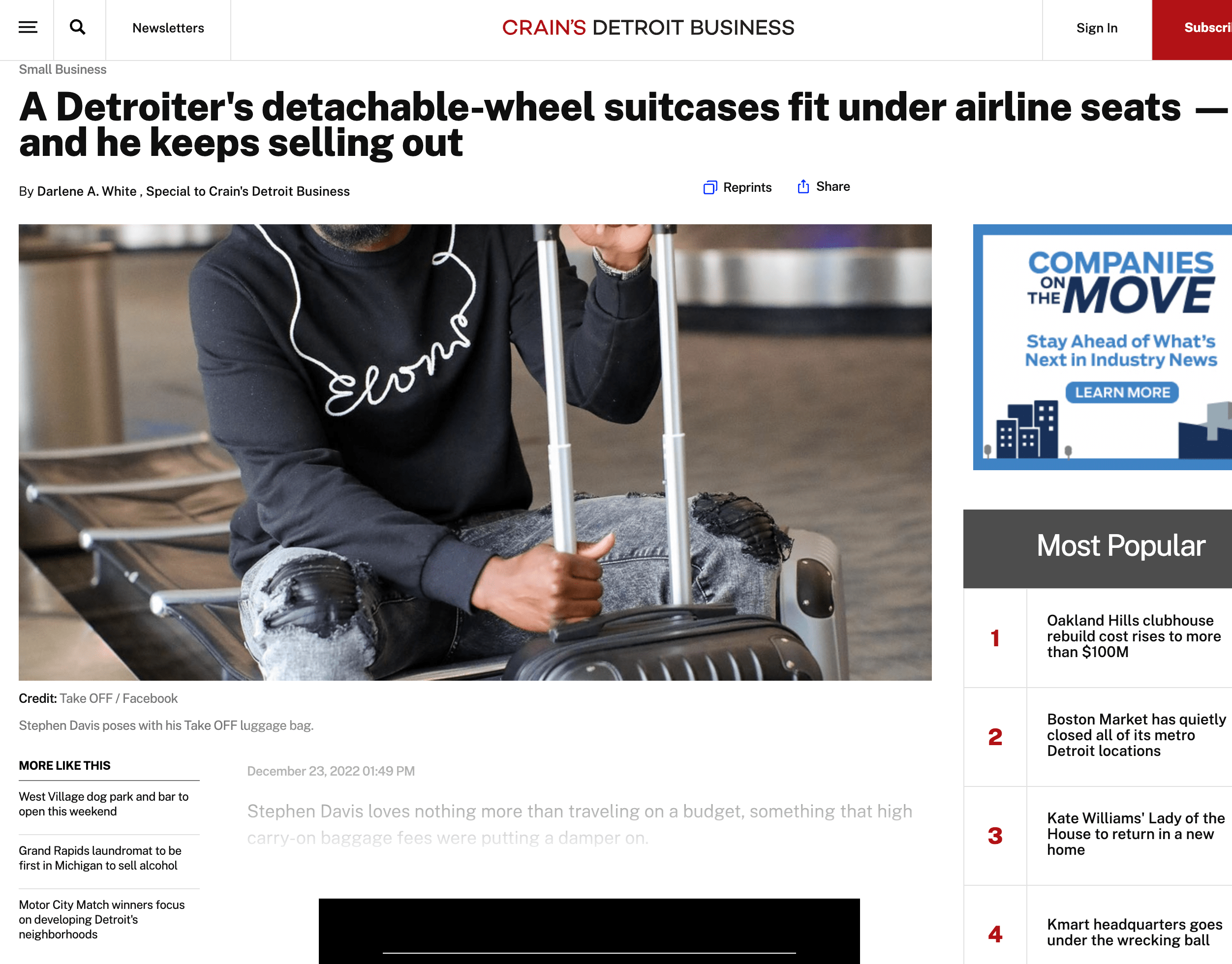 A Detroiter detachable-wheel suitcases fit under airline seats — and he keeps selling out