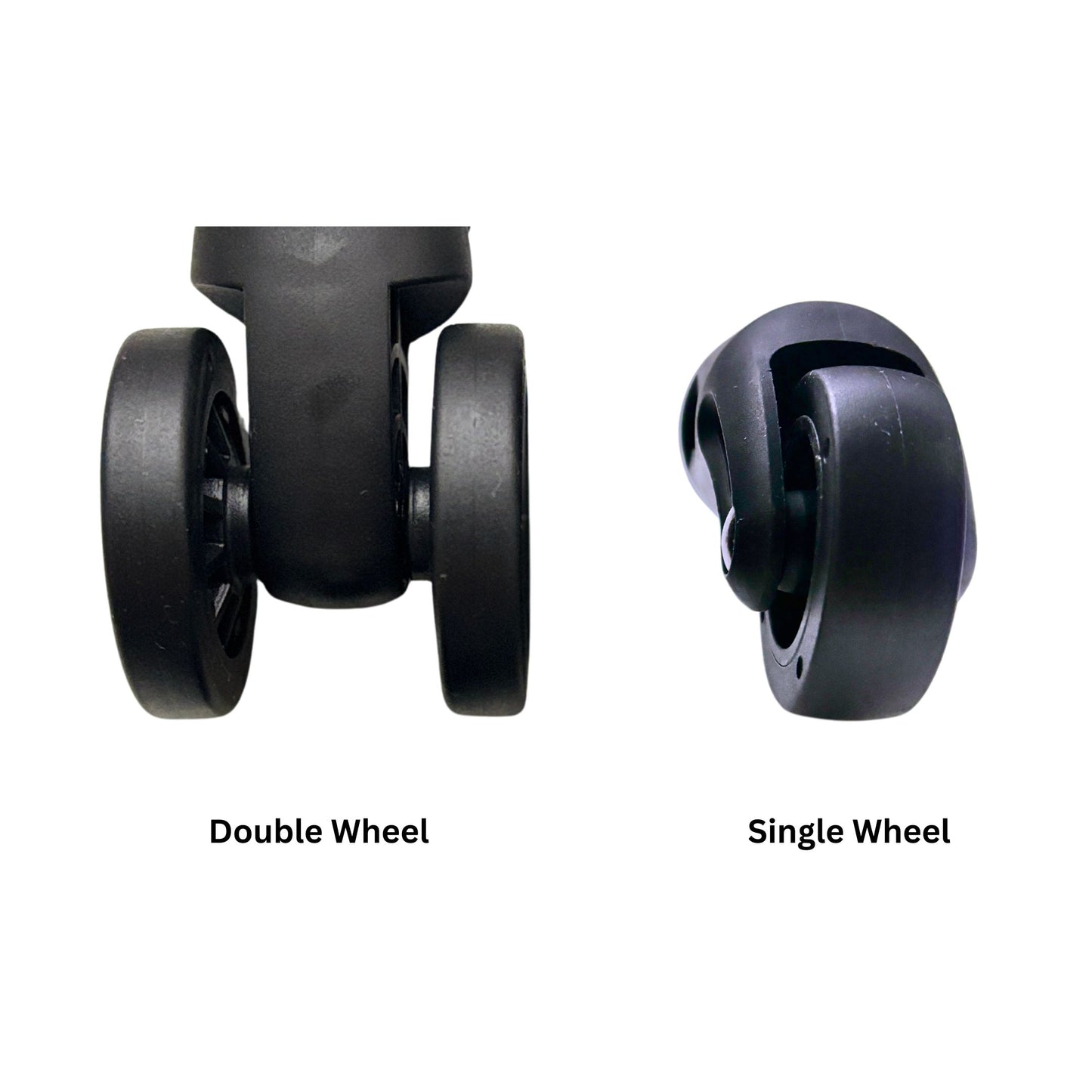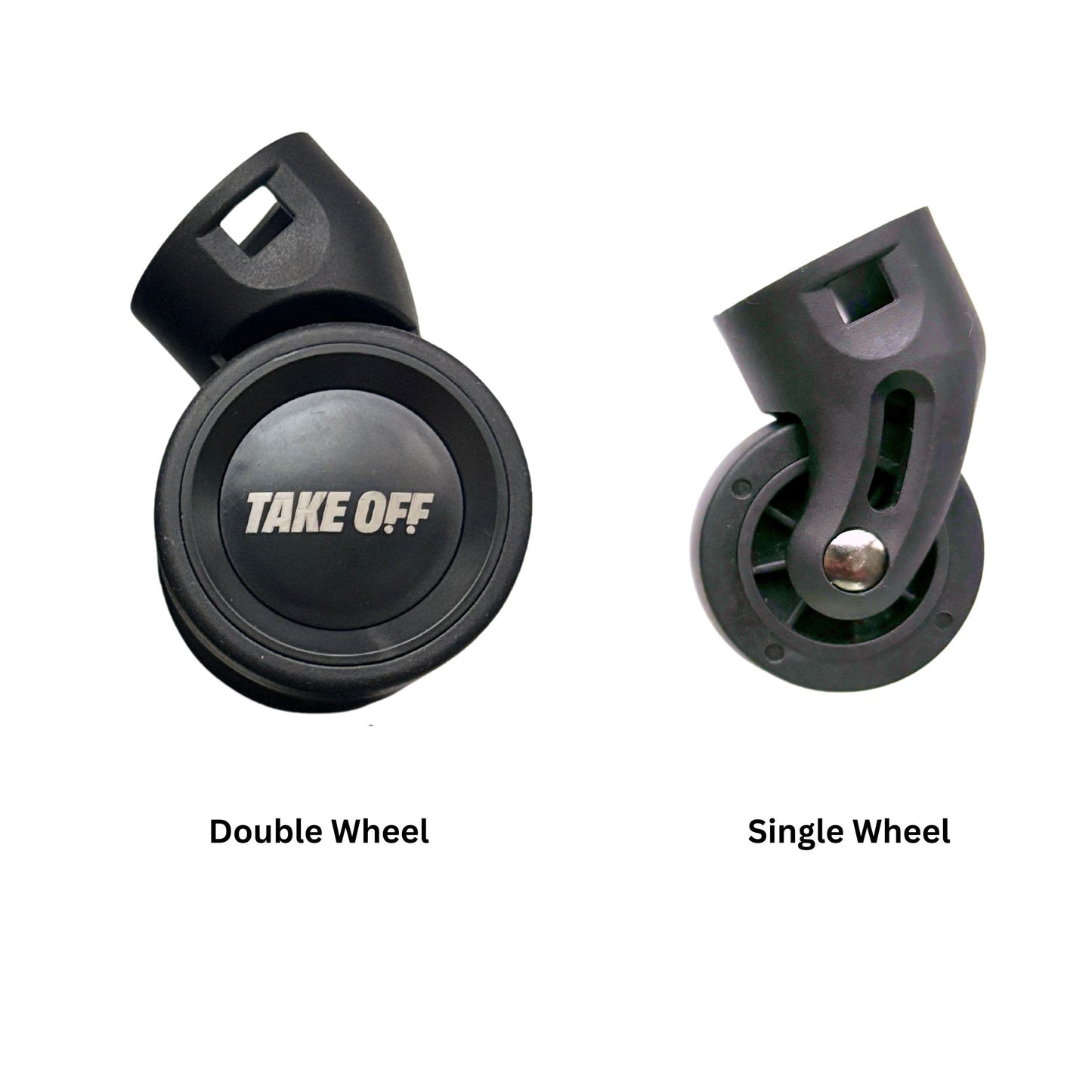 Upgrade your original wheels to our new double wheels and give your TAKE OFF Luggage a deluxe feel. Save your original wheels as a spare in case you lose or damage your new set!