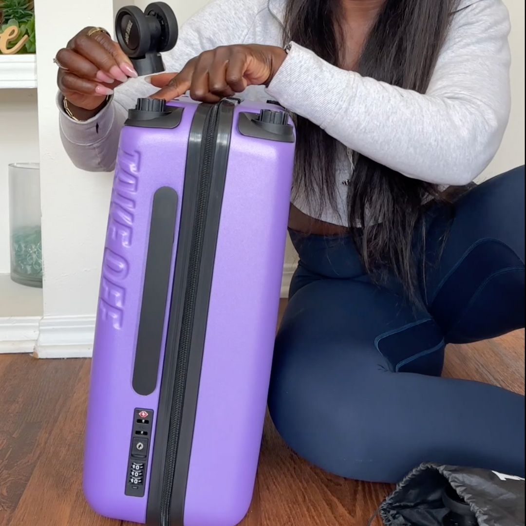 Upgrade your suitcase to a smoother roll, and with an easy to remove button. Take the wheels off in less than a second. This is a set with the wheels and the wheel base. Also works with both the 1.0 and 2.0 personal item suitcase versions.