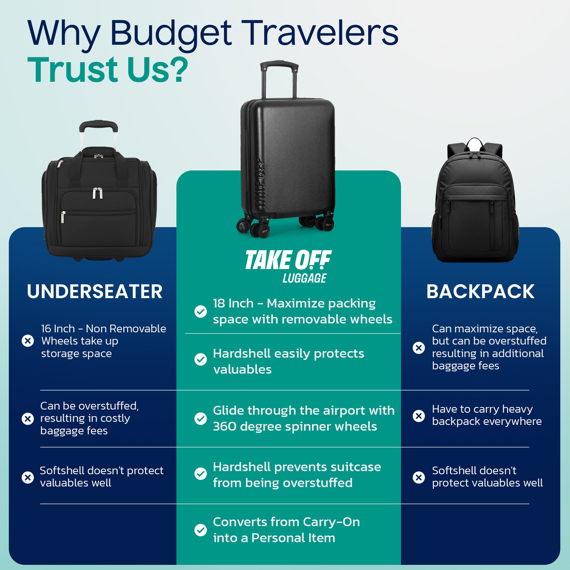 Meet the TAKE OFF Luggage 3.0: The upgraded personal item suitcase that saves you $100+ per flight on Spirit, Frontier, and budget airlines.