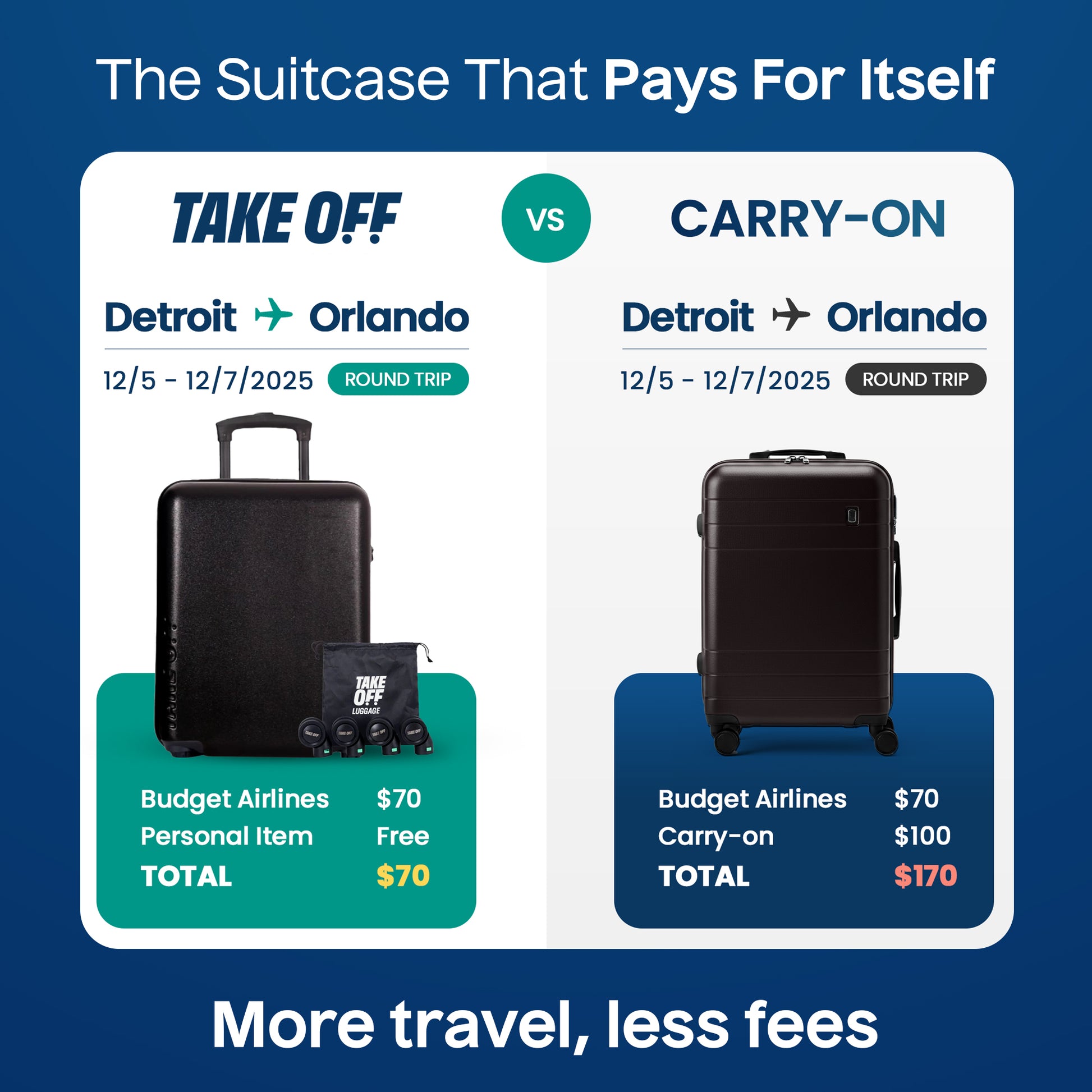 Save up to $200 on every trip with TAKEOFF Luggage